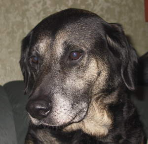 Das ist Rocky, ein 9-jähriger Golden Retriever/Altdeutscher Schäferhund-Mix . Sie ist der Hund von Dani’s Eltern und lebt zusammen mit Hexe und Rose.