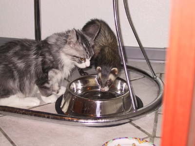 Ashanti und Tiger teilen sich den Wassernapf