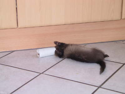 Unsere Callisto hat damit richtig Spaß. Wir haben ihr das Ding nicht aufgesetzt. Sie setzt das Ding auf und rast damit durch die Bude und wenn wir ihr die Rolle abnehmen dann dauert es keine 2 Minuten und sie hat die wieder auf dem Kopf stecken :o).