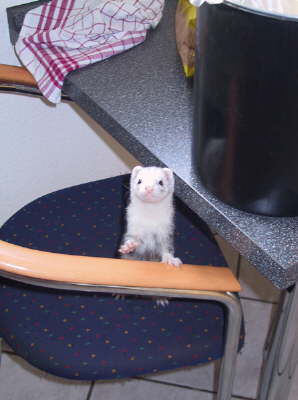 Hera wartet auf das nächste Stück Kartoffel beim Kartoffel schälen