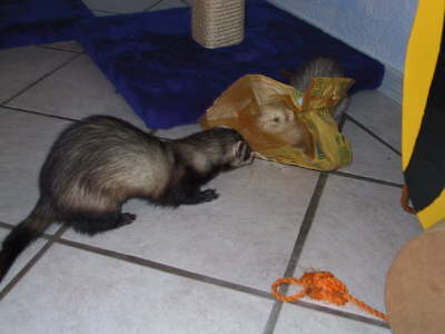 Balu und Hera (auch alle anderen) beim Spiel mit einem leeren Plastik-Kartoffelsack