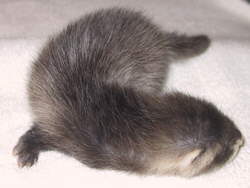 Das Fell des Langhaarwelpen ist immer noch sehr dünn ( hier im Bild sehr deutlich am Schwanz erkennbar). Das Fell des Kurzhaarwelpen ist nun sehr dicht, glatt und glänzend. Die Gehörgänge beginnnen sich zu öffnen. Den Welpen kann nun zusätzlich ein wenig Babybrei angeboten werden (z.B. Hipp Gläschen).