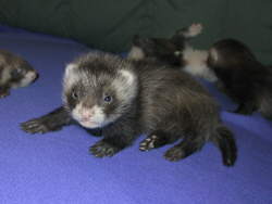 Die Welpen haben ihr Geburtsgewicht verdreifacht. Die Kurzhaarwelpen haben nun schon Fell bekommen, im Gegensatz zu den Langhaarwelpen.